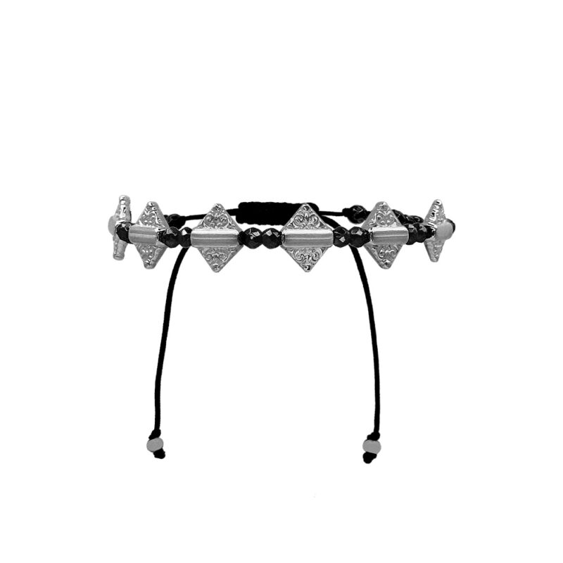 Αρχική σελίδα Κοσμήματα Βραχιόλια Rock Βραχιόλι Με Τρίγωνα Επιπλατινωμένα Με Ασήμι 925 Και Αιματίτες