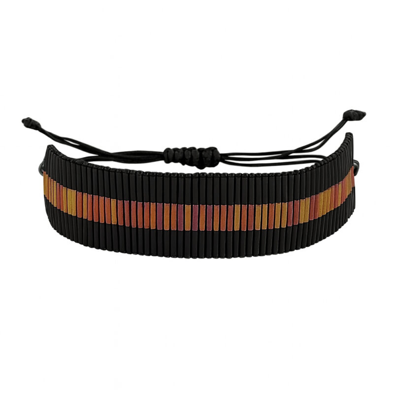 Υφαντό Βραχιόλι Με Μαύρα και Μπρονζέ Σωληνάκια
